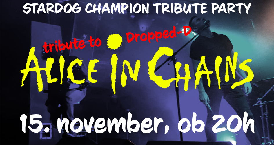Leto se bliža h koncu in ob takšnem času že vrsto let Stardog Champion Tribute Party skrbi za grungerske sladokusce in zasedba Dropped-D bo zopet poskrbela za zdravo dozo adrenalina z izjemnimi Alice in Chains skladbami. Dropped-D je prva zasedba koncepta Stardog Champion Tribute Party, ki že več kot dvajset let suvereno nastopa. Noče biti to kar danes narekuje tribute scena. Skupaj s publiko želi uživati v ekstazi in doživetju živega nastopa te mogočne zvočne vrhunskosti. To se predvsem kaže v publiki danes, kjer niso le nostalgiki, ampak tudi najstniki. Mi zagotavljamo, da bo na glas, vi pa pridite v čim večjem številu.
