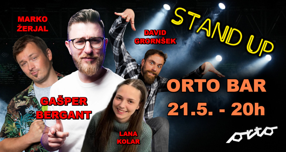 V četrtek, 21.5., nas pridejo v Orto bar nasmejat kar štirje slovenski komiki, Gašper Bergant, Marko Žerjal, David Gorinšek in Lana Kolar!